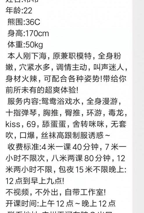一个非常会玩的御姐,因为生活原因被迫下海,来到广州出差,在与你上加了这个美女,见到真人比照片要好看一些,服务很细致有耐心,属于又御姐又骚的那种,玩的尽兴刺激,口的时候感觉她吃的很过瘾,吃不够,边吃边说骚话,69的时候浪叫个不停,边浪叫边给我舔,还可以69深喉,水特别多的一个女的,做的时候边叫爸爸边浪叫,老公爸爸换着叫,主打的就是一个会玩骚浪贱,喜欢骚御姐的水多的可以试试,玩的很尽兴,有那个氛围。